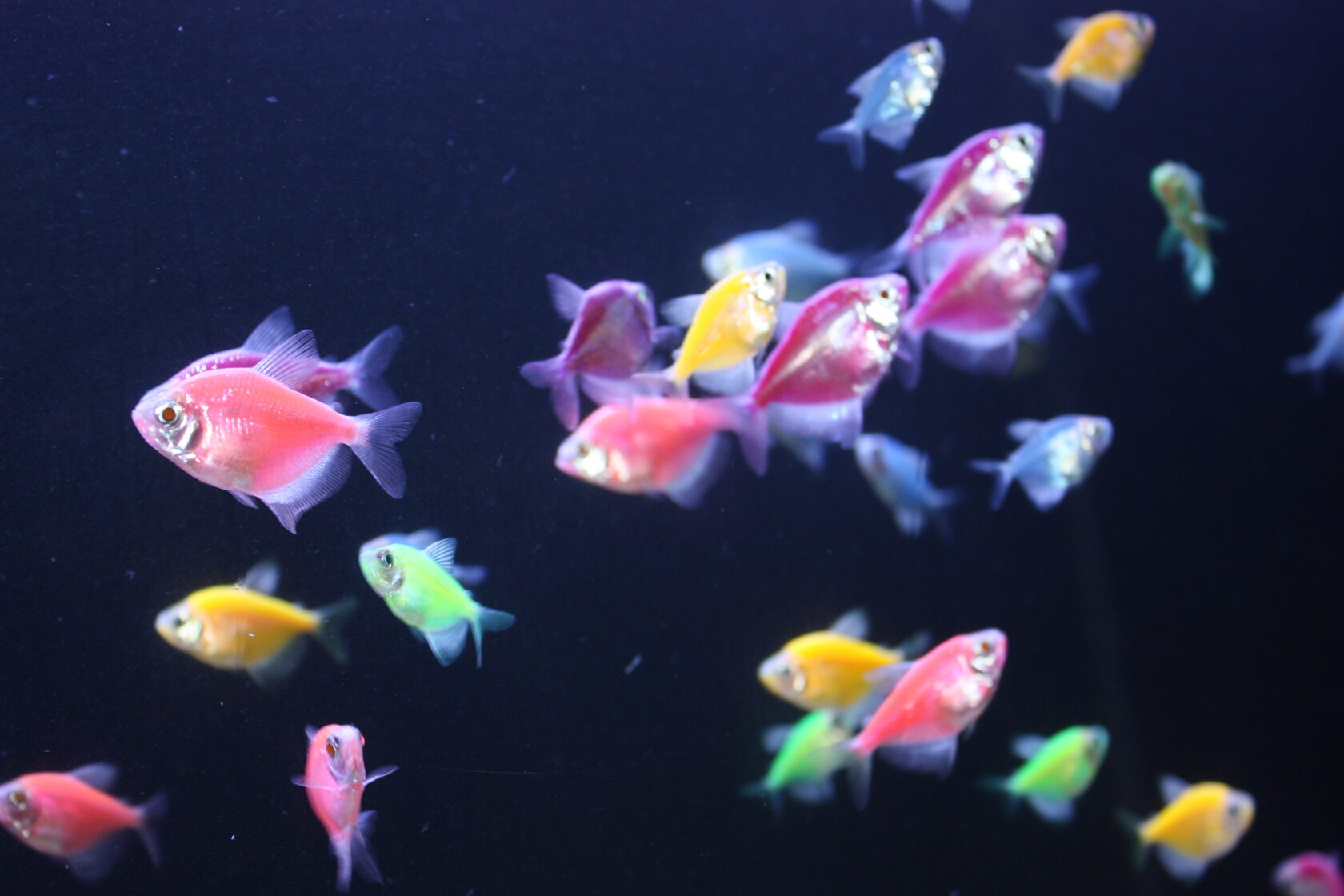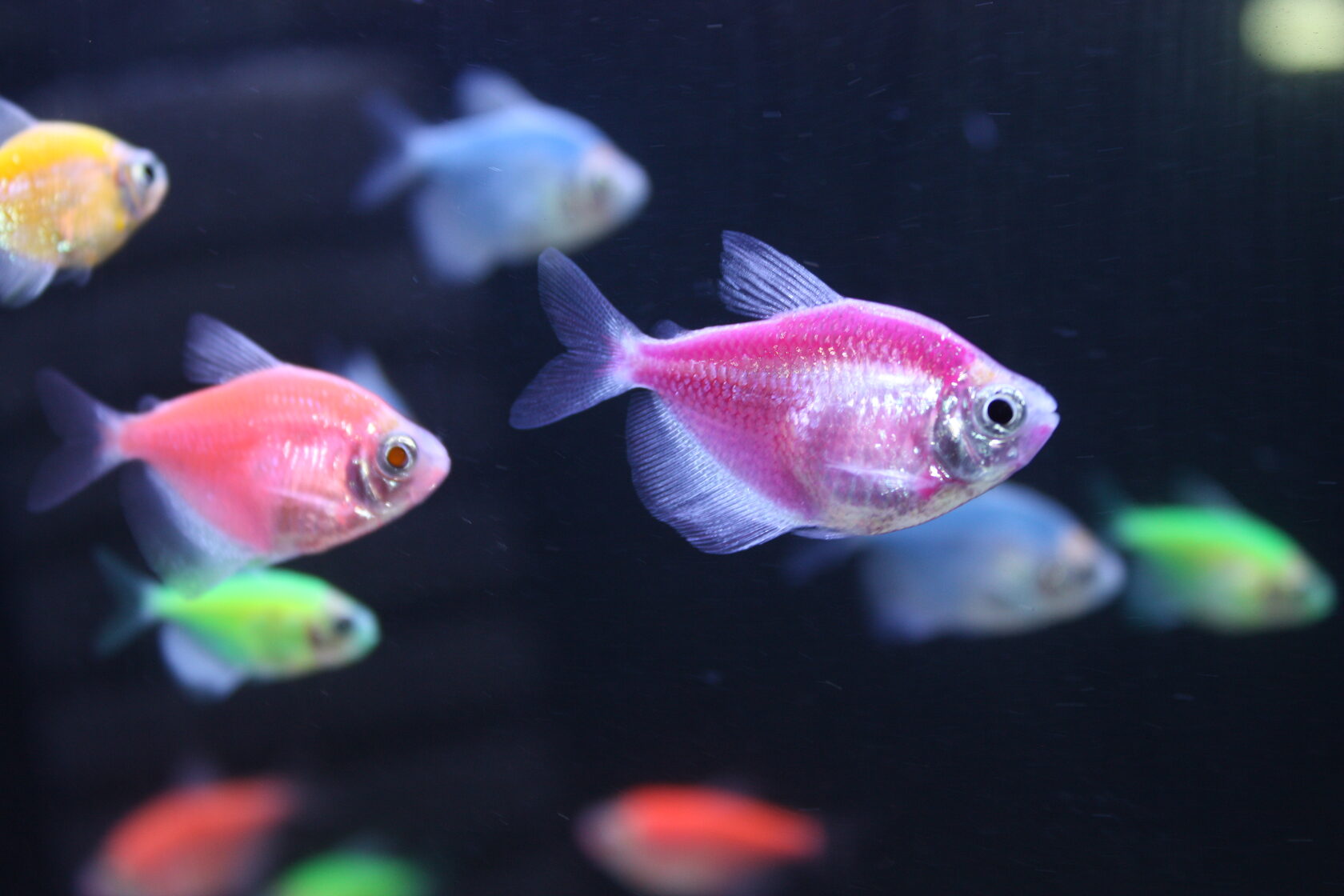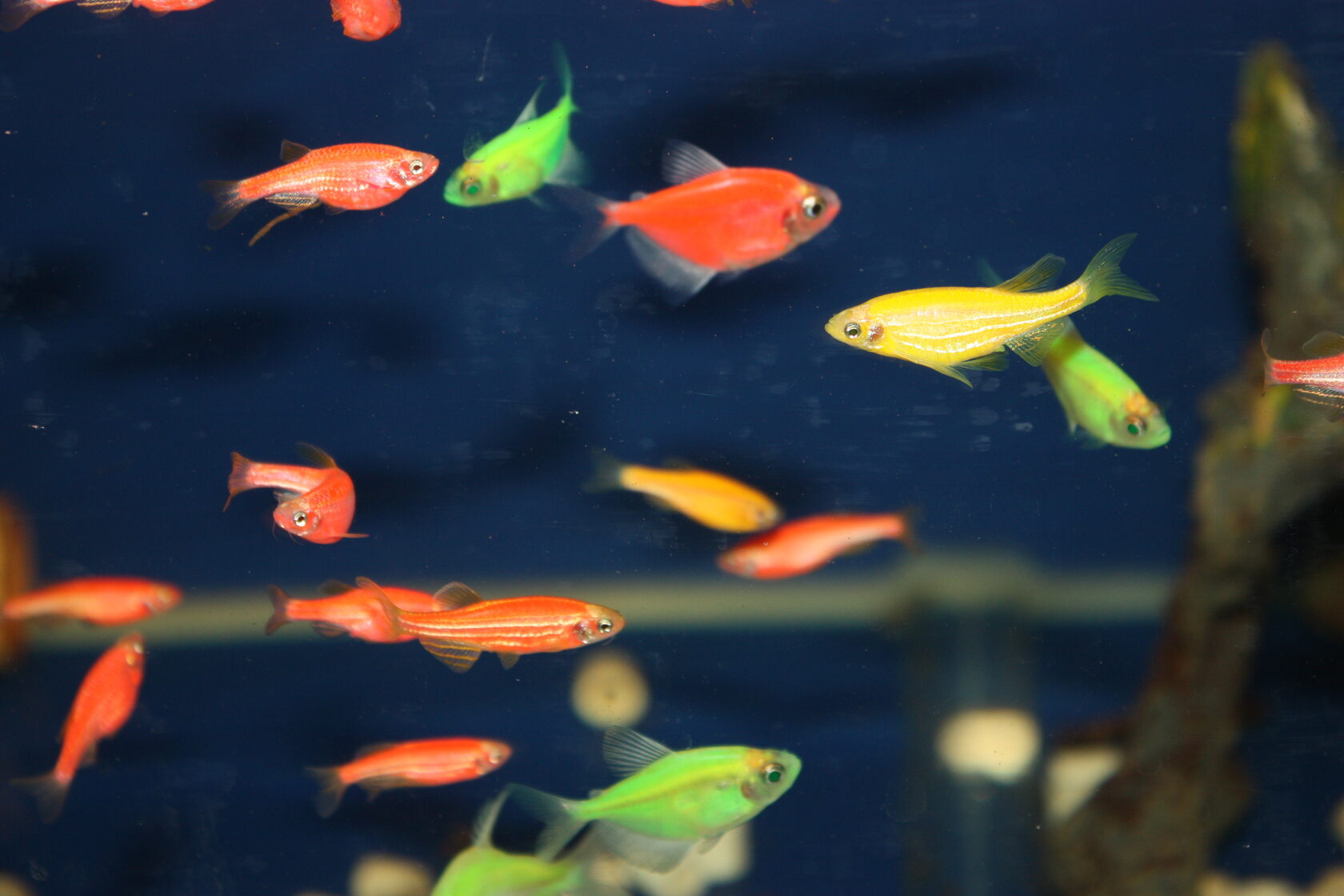 Данио Гло (Danio GloFish) — это разновидность обычных данио рерио, генетически модифицированных таким образом, чтобы светиться различными яркими цветами. Этот эффект достигается путем введения специальных флуоресцентных белков, которые позволяют рыбкам ярко светиться даже при обычном свете. Получена путем внедрения генов медуз и кораллов в ДНК данио-рерио, что делает их ткани флуоресцентными. Размеры: От 3 до 5 см в длину. Срок жизни: До 3-4 лет при хорошем уходе. Цветовая гамма: Рыбки бывают разных оттенков — зелёные, синие, оранжевые, красные, фиолетовые и жёлтые. Температура 22-26 Предпочитают слегка кислую воду с уровнем pH около 6.5-7.5 и средней жёсткостью (5-15°dH). От 30 литров для небольшой стайки. Рекомендуется от 50-60 литров для свободного плавания. Данио Гло едят практически всё: сухой корм, живой корм (мотыль, дафнии). Рекомендуется чередование сухих и живых кормов для разнообразия рациона. Эти маленькие рыбки идеально сочетаются с любыми миролюбивыми соседями аналогичных размеров, неоны, тетры (миноры), меченосцы, моллинезии, гуппи, расборы, мирные сомики (коридорасы, анциструсы), кардиналы.