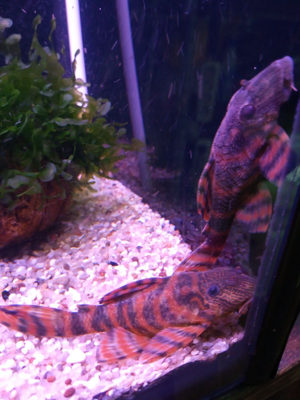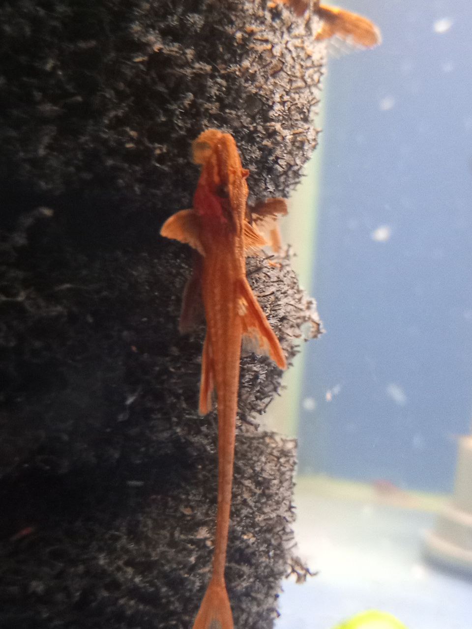 Лорикария красная (Rineloricaria sp.) — представитель семейства кольчужных сомов (Loricariidae). Вырастают до 10-12 см. Живут до 10 лет Яркий красный оттенок тела с тёмными поперечными полосками. Удлинённое, вытянутое тело, покрытой рядами мелких пластинок-костяных щитков. Хвостовой плавник имеет форму треугольника с длинными лучами. Голова треугольная заострённая, на ней располагается пара глаз и рот-присоска. Плавники крупные, их лучи заканчиваются небольшими шипами. Рекомендуется ёмкость объёмом от 100 л. Температура воды должна поддерживаться в пределах 22-28 °C. pH: 6.5-7.5, мягкая вода (до 15 dGH) Основу рациона составляют водоросли, овощи (салат, кабачки, огурцы), специализированные гранулы и таблетки для сомов. Красные лорикарии отличаются спокойствием и скрытностью. Им важно обеспечить достаточное количество убежищ, таких как трубки, гроты и крупные камни. Если создать подходящие условия содержания, эта рыба сможет радовать владельца своим ярким внешним видом долгое время.