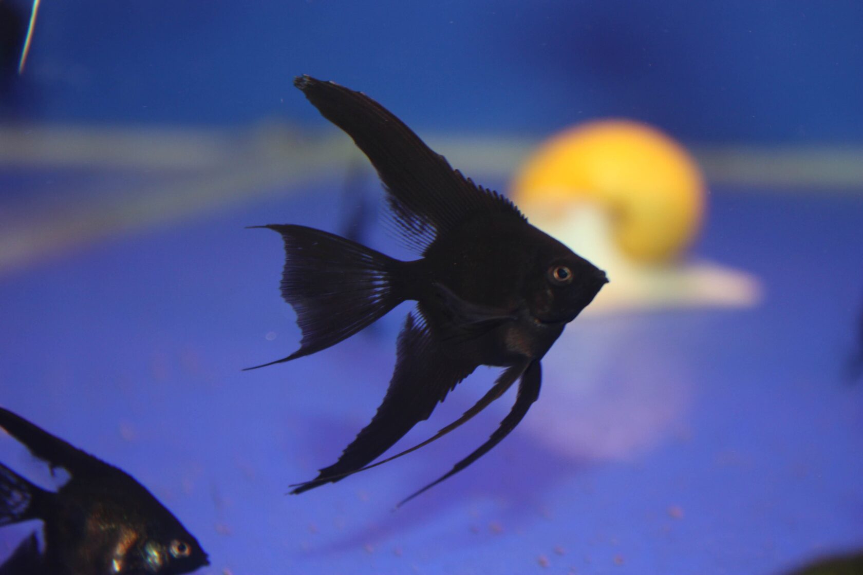 Условия содержания: Черные скалярии требуют просторного аквариума объемом не менее 100 литров на пару. Оптимальные условия: - Температура воды: 24-28°C. - Жесткость воды: мягкая (dH 2-15°). - Кислотность: слабокислая (pH 6.0-7.5). - Фильтрация и аэрация обязательны.