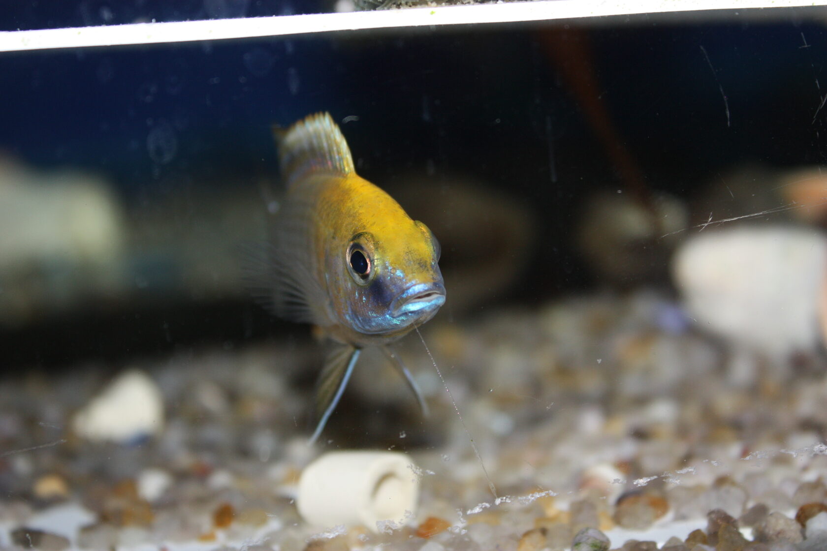 Лабидохромис еллоу (Labidochromis caeruleus, также известный как лабидохромис лимонный) — вид африканских цихлид, обитающих в озере Малави. Эта рыба отличается ярким жёлтым окрасом и компактными размерами, что сделало её популярной среди любителей аквариумов. Взрослые особи достигают примерно 8-10 см в длину. Тело длинённое, слегка сжатое с боков. Интенсивно-жёлтый с тёмными губами и плавниками, иногда встречаются небольшие черные пятна на спине. Лабидохромисов рекомендуется держать группами (не менее 6 особей). Для комфортного проживания нужен просторный аквариум объемом минимум 100 литров. Вода должна быть чистой, жёсткой и щелочной (pH 7.5-8.5, температура 24-28 °C). Несмотря на относительно миролюбивый характер, лабидохромисы всё же территориальные и могут проявлять агрессию к соседям своего вида или схожего размера. Рекомендуется селить их вместе с другими малавийскими цихлидами, такими как меланохромисы или псевдотрофеусы. Самки вынашивают икру во рту в течение нескольких недель, пока мальки не станут самостоятельными. Это характерно для большинства видов цихлид озера Малави. Таким образом, лабидохромис еллоу станет отличным дополнением для аквариума, демонстрируя свою яркую окраску и активность, при условии правильного подбора соседей и соблюдения условий содержания.