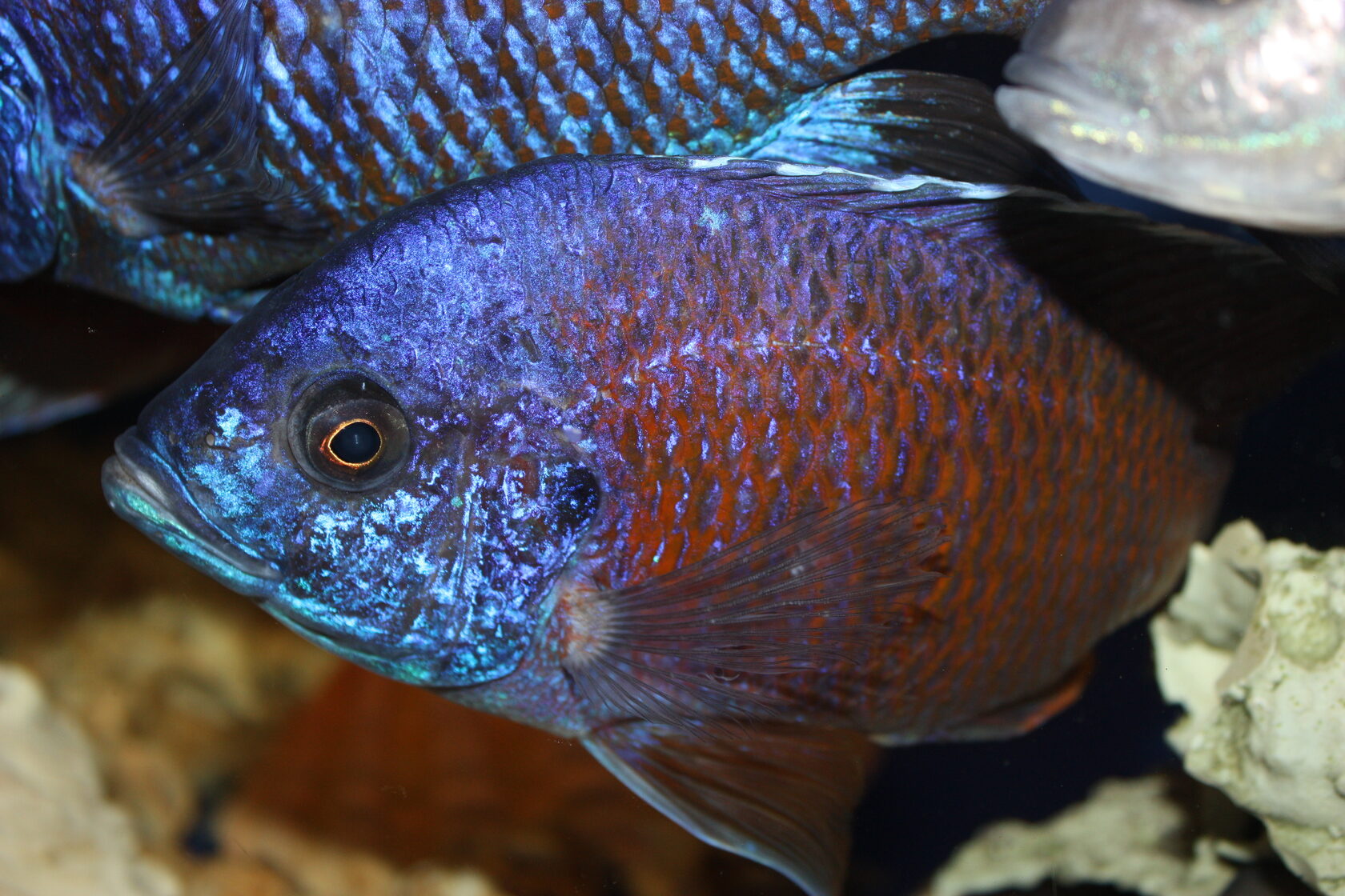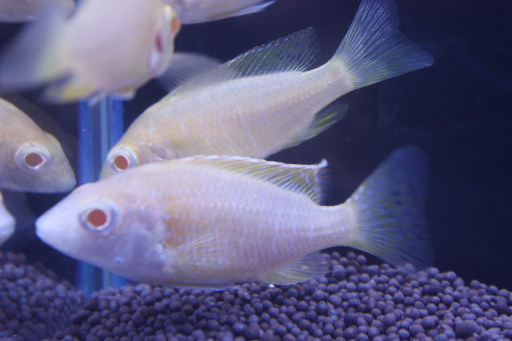 Питание: Эти рыбы всеядны и охотно поедают живой корм (мотыль, артемия), замороженный и сухой специализированный корм для цихлид.