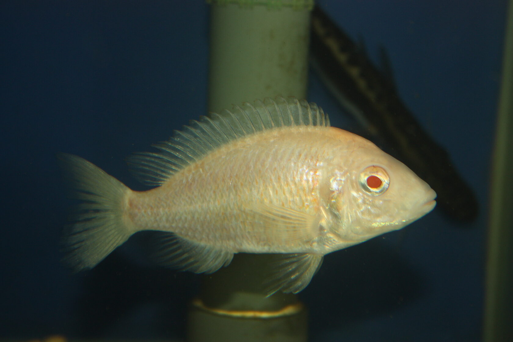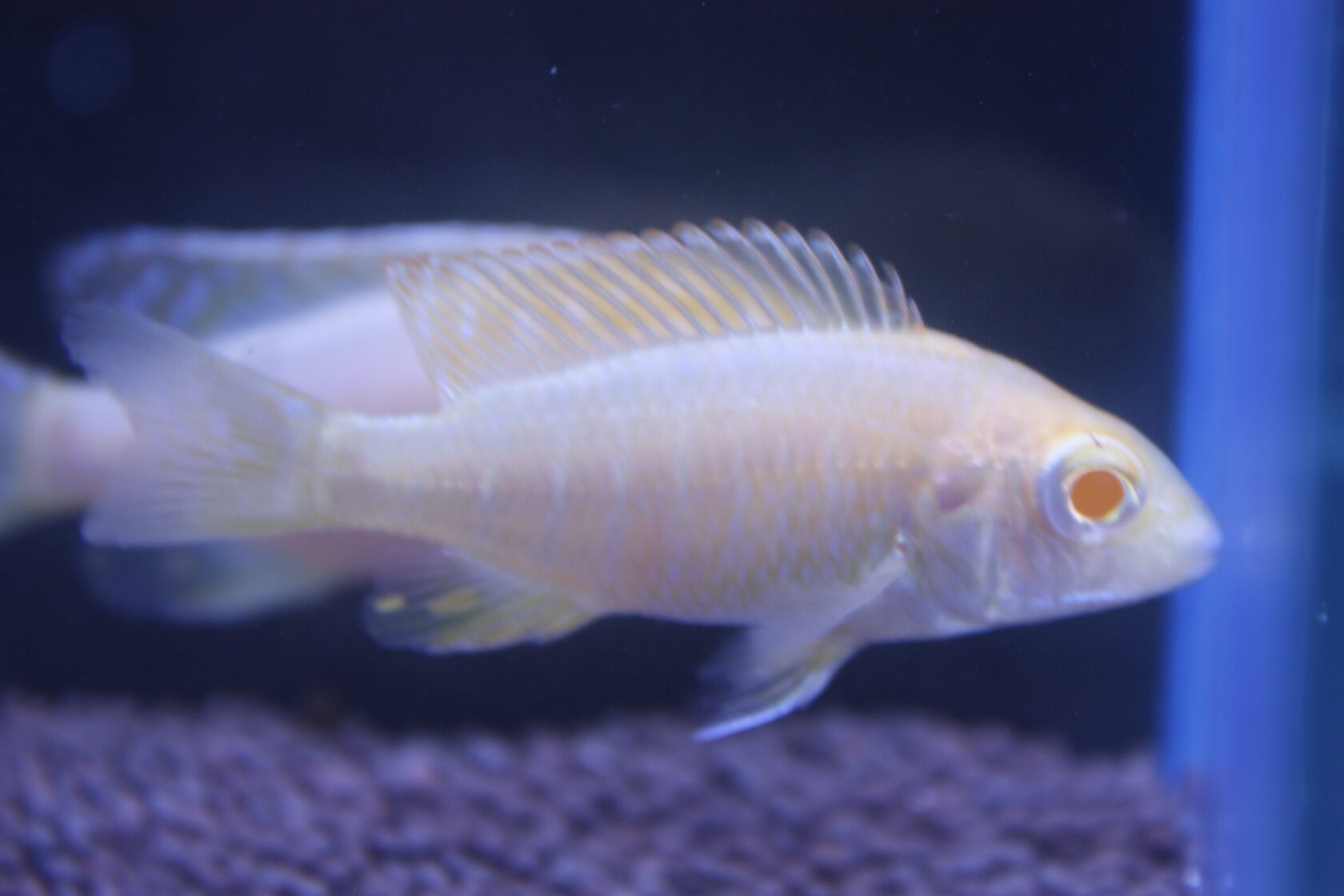 Аулонокара Бенши Альбино (Aulonocara stuartgranti "Benshi Albino") — одна из разновидностей популярного рода африканских цихлид Аулонокары, происходящих из озера Малави. Данная разновидность выделяется своим уникальным внешним видом и редкостью, ставшей результатом генетической мутации, приводящей к появлению альбинизма. Рыбки отличаются отсутствием пигментации, вследствие чего обладают белоснежным телом с розовыми глазами и лёгким золотистым отблеском на чешуе. Взрослые особи вырастают до 10-12 см в длину. От 5 до 8 лет при оптимальных условиях содержания. Аквариум не менее 100 литров на группу из 6-8 особей. Жёсткая вода с температурой 24-28°C, pH 7.5-8.5. Важно помнить, что альбиносные формы более чувствительны к свету и заболеваниям, поэтому поддержание стабильных условий и регулярный уход являются обязательными условиями для долголетия. Подходит для содержания совместно с другими миролюбивыми малавийского типа цихлидами аналогичного размера, избегайте агрессивных соседей.