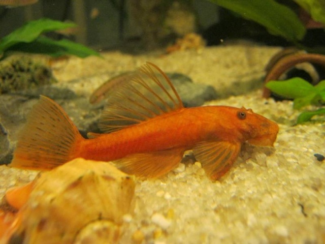 Анциструс Супер Ред (Ancistrus sp. "Super Red") — это особая декоративная вариация распространённого рода сомов-присосок, получившая известность благодаря уникальной насыщенно-красной окраске. Достигает около 8-12 см в длину. Типичное для анциструсов строение тела — уплощённое, покрытое костными пластинами. Яркий красный или оранжевый цвет покрывает всю поверхность тела, включая голову и хвост. Ведут сумеречный и ночной образ жизни, прячась днём в расщелинах и пещерах. Анциструсы Супер Ред требовательны к качеству воды и наличию укрытий: Температура 22-28°C. Предпочтительна мягкая и кисловатая среда (pH 6.5-7.5, GH 5-15°dH). Наличие большого количества растений, пещер и декоративных элементов способствует созданию комфортной среды обитания. По природе своей анциструсы являются растительноядными животными, нуждающимися в большом количестве грубой пищи, богатой клетчаткой. Рекомендуются специальные корма для травоядных рыб, замоченные овощи (кабачки, морковь) и таблетированные препараты. Рыбы строят гнездо в узких щелях или внутри искусственных укрытий, куда самка откладывает икру. После оплодотворения самец охраняет кладку вплоть до появления молодняка.