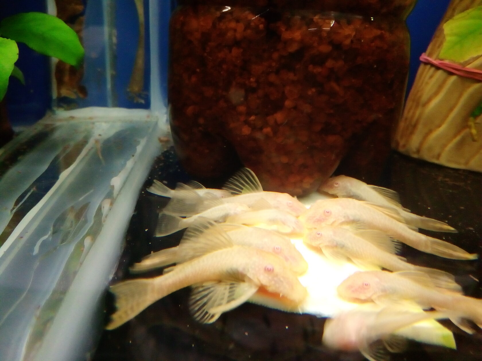 Анциструс альбинос (Ancistrus sp. "Albino") — это разновидность сома-присоски, выведенная искусственно путем отбора альбиносных особей обычного анциструса обыкновенного (Ancistrus dolichopterus). Основное отличие анциструсов альбиносов от обычных собратьев — отсутствие естественной пигментированной окраски, отчего кожа приобретает белый или бледно-розовый оттенок, а глаза становятся красными. Обычно достигают размеров 8-12 см. Бледная белая или кремовая окраска тела, красные глаза, наличие характерных шиповатых усиков вокруг рта. Травоядные, предпочитают растения, детрит, мягкие водоросли, овощные добавки. Оптимальная температура воды 22-28°C. Предпочитают мягкую и слабощелочную воду (pH 6.5-7.5, dGH 5-15°dH). Необходима хорошая фильтрация и постоянная подача кислорода. Анциструсы ведут ночной образ жизни, поэтому яркий свет нежелателен.