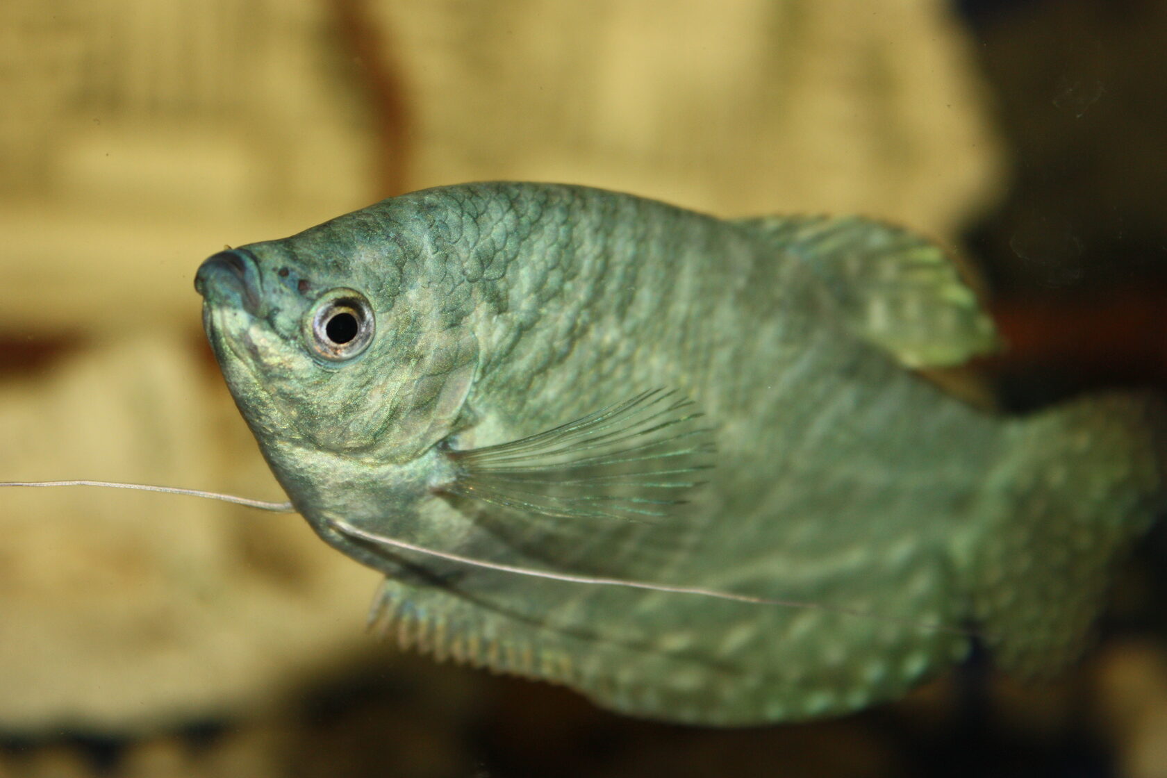 Макропод чёрный (Macropodus spechti или Macropodus concolor) также известен как Чёрная райская рыба (Black Paradise Fish). Это одна из самых интересных и выносливых лабиринтовых рыб, но обладающая достаточно агрессивным характером. Происхождение: Юго-Восточная Азия (Вьетнам, Южный Китай, Корея). Обитает в стоячих или слабопроточных водоемах, в том числе в рисовых полях. Внешний вид: Тело вытянутое, сжатое с боков. У самцов непарные плавники (спинной, анальный, хвостовой) сильно удлинены. Хвостовой плавник часто лирообразный. Основной цвет тела от серо-коричневого до темно-коричневого. В обычном состоянии: Едва заметны красные полосы и темная кайма чешуи, образующая сетчатый рисунок. Во время нереста/агрессии: Самец становится практически полностью чёрным (отсюда и название). Размер: Самцы до 10-12 см, самки до 8 см. Как и все лабиринтовые, макропод имеет жаберный лабиринт, позволяющий ему дышать атмосферным воздухом. Чёрный макропод неприхотлив, но требует определенных условий, учитывая его характер. Объем аквариума От 80 литров на пару или группу (1 самец и 1−2 самки). Высота не критична, важнее площадь поверхности. Температура (T) 20−25∘C Хорошо переносит колебания, но не любит длительного перегрева. Кислотность (pH) 6,0−8,0 Очень вынослив к параметрам воды. Жесткость (dH) До 20∘dH Оформление Густые заросли растений (для укрытия самки), плавающие растения (для строительства гнезда). Тёмный грунт. Крышка обязательна (макроподы — отличные прыгуны!). Фильтрация и аэрация умеренные (сильное течение нежелательно). Чёрный макропод известен своим агрессивным и территориальным характером, особенно самцы. Рекомендуется держать одного самца с несколькими самками, желательно, чтобы рыбы росли вместе. Подбор соседей затруднен. Можно содержать с подвижными рыбами, соизмеримыми по размеру (данио, некоторые барбусы). Сомиками Несовместимы с медлительными рыбами, рыбами с вуалевыми плавниками (например, вуалевые формы гуппи, скалярии) — макропод может общипывать плавники. Мелкие креветки и улитки — являются для макропода добычей.