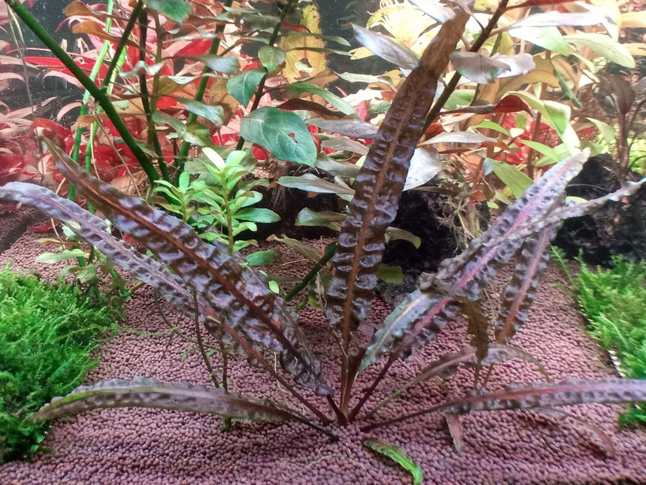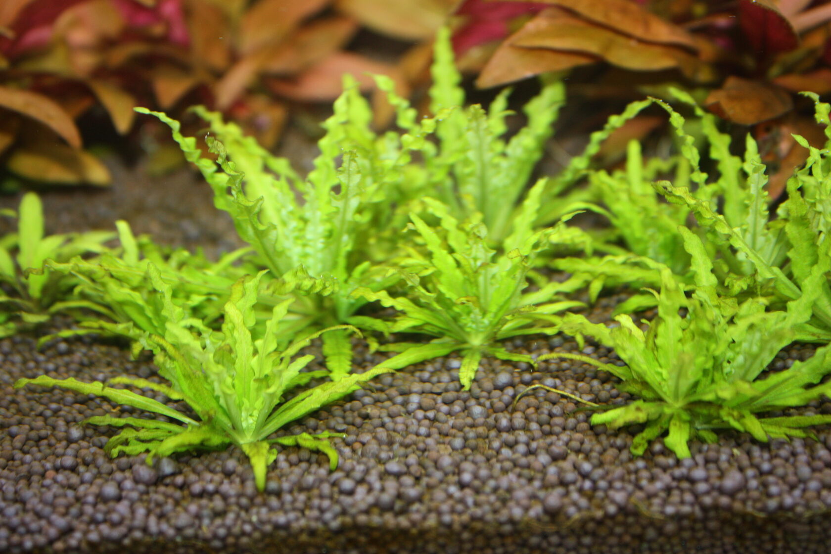 Таиландский узколистный папоротник, известный как Microsorum pteropus 'Narrow Leaf', является популярной разновидностью традиционного таиландского папоротника, отличающаяся своими длинными и узкими листьями, создающими уникальный визуальный эффект в аквариуме. Папоротник узколистный обладает хорошо развитым корневищем длиной 15-20 см. От него отходит большое количество листьев, длина которых может достигать 20 см, при этом их ширина составляет 0,5-2 см. Окрашены они в приятный темно-зеленый цвет. На нижней стороне листьев хорошо заметны крохотные круглые образования – сорусы. В них созревают споры папоротника. Расти может как полностью под водой, так и в полупогруженном состоянии. Растение обладает способностью закрепляться на твердых субстратах, таких как камни и коряги, благодаря своим ризоидам. Средний уровень освещения идеально подходит для нормального развития папоротника. Температура от 22 до 28 градусов Цельсия, кислотность pH 6-7,5, жесткость dGH 2-15. Регулярное внесение удобрений, содержащих железо и микроэлементы, поддерживает здоровый рост и яркую окраску листьев.
