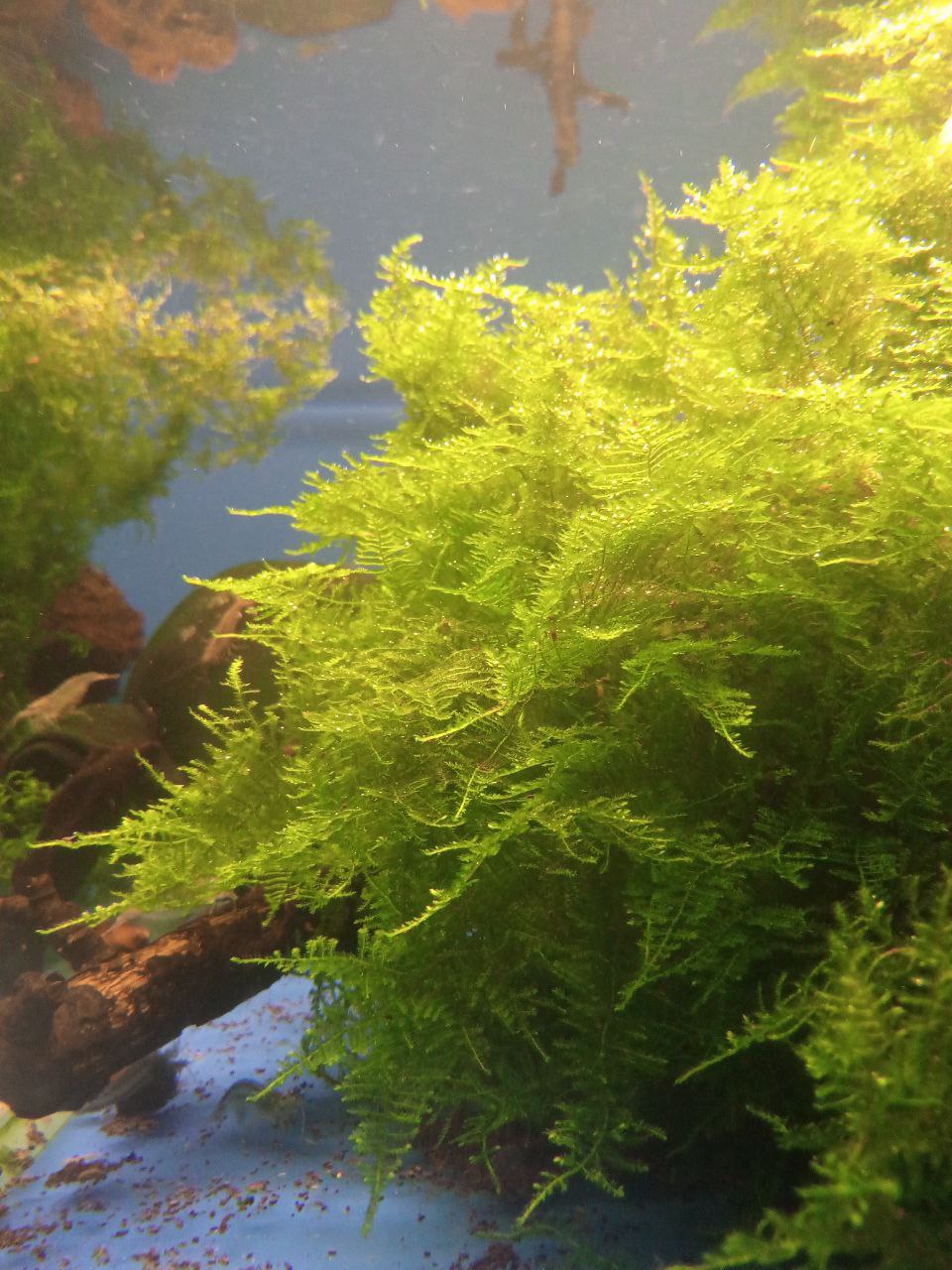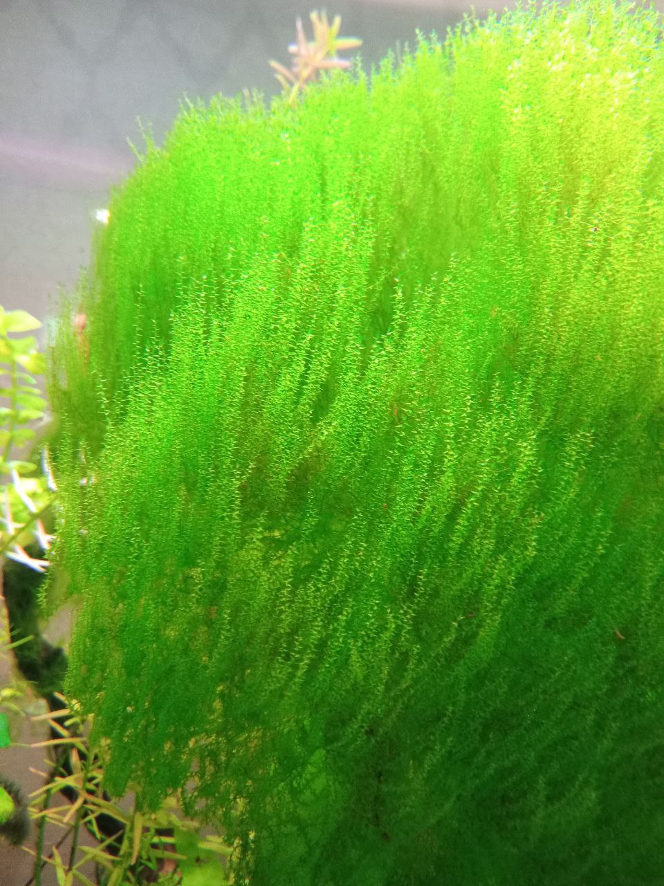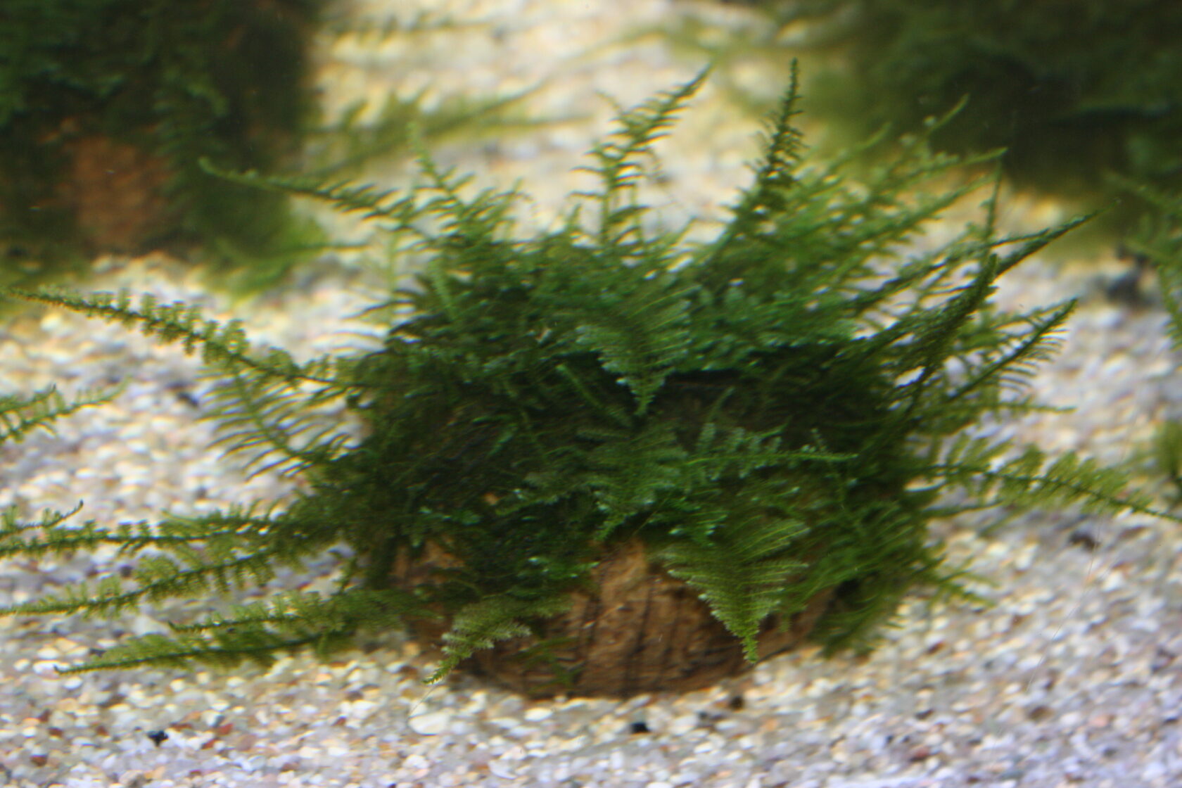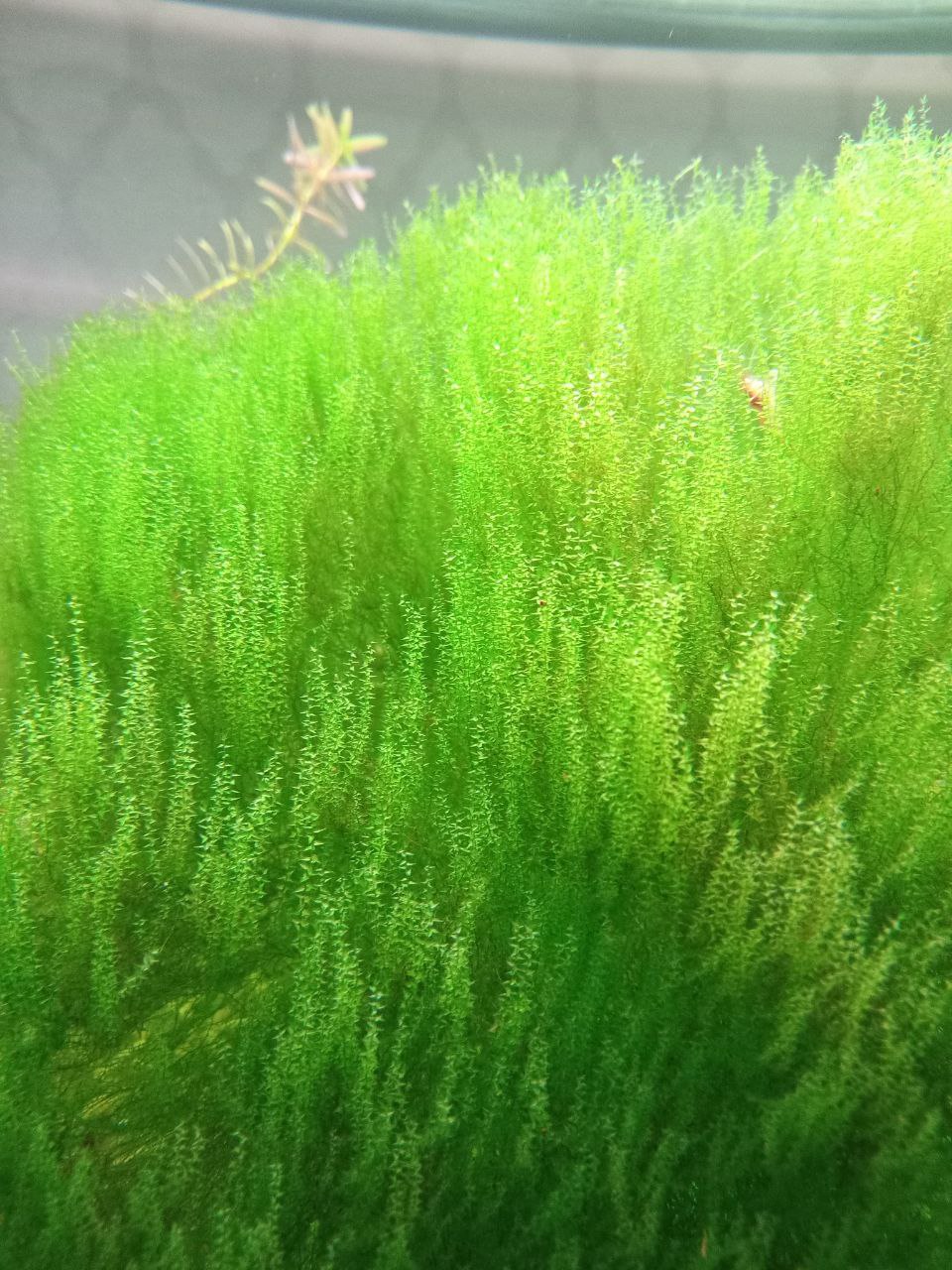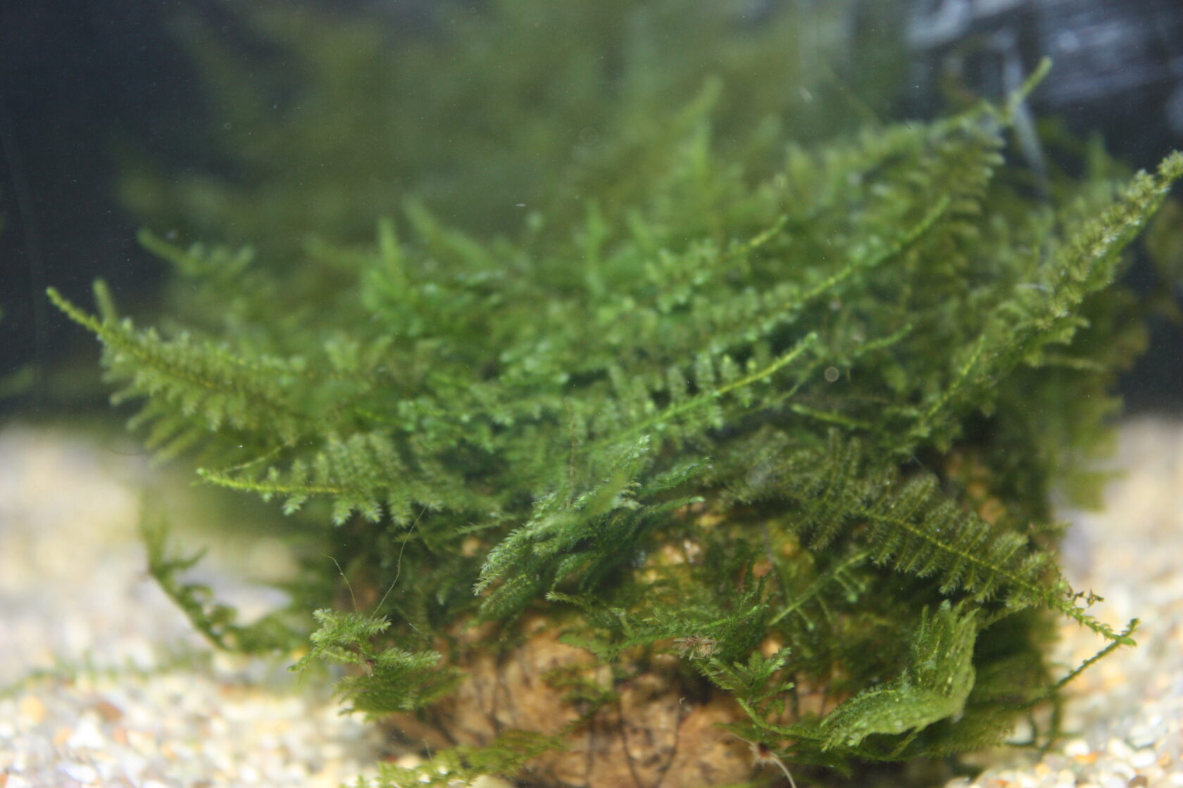 Аквариумный мох «рождественский» (Christmas moss) получил свое название благодаря характерному внешнему виду, напоминающему елочные ветви. Это растение широко используется в акваскейпе для создания декоративных элементов и улучшения внешнего вида аквариума. Растение образует плотные ковры с ветвистой структурой, похожей на миниатюрные елочки. Листья мелкие, темно-зеленые, расположены густо друг возле друга. Оптимальная температура составляет 22-28 °C. Предпочитает мягкую воду с жесткостью dGH 4-10°. рН 6.5-7.5. Среднее освещение обеспечивает лучший рост, хотя растение способно адаптироваться к разным уровням света. Рождественский мох отлично смотрится на каменных гротах, корягах и других элементах дизайна. Может использоваться для формирования живых зеленых ковров на дне аквариума. Помогает замаскировать фильтры, нагреватели и прочие устройства.